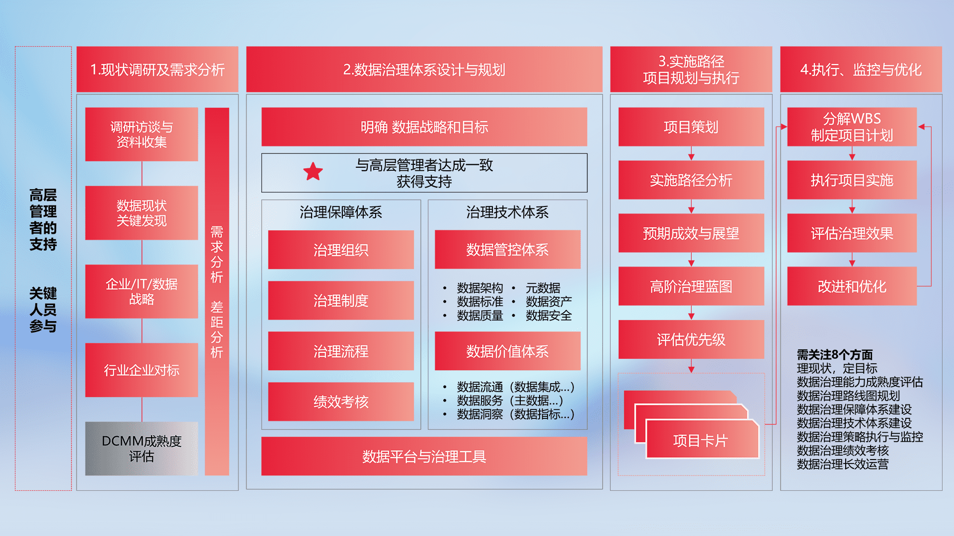 制定并执行统一的数据标准,,,,规范数据定义和格式,,消除冗余和不一致性,,,,实现跨部门和跨系统的数据一致性,,,为企业提供标准化的数据基础。。。